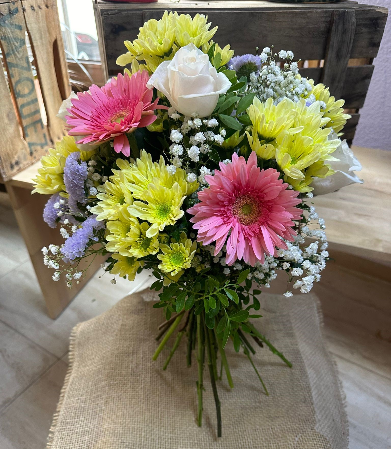Cada flor aporta movimiento, textura y delicadeza, dando lugar a un ramo armonioso y lleno de vida.